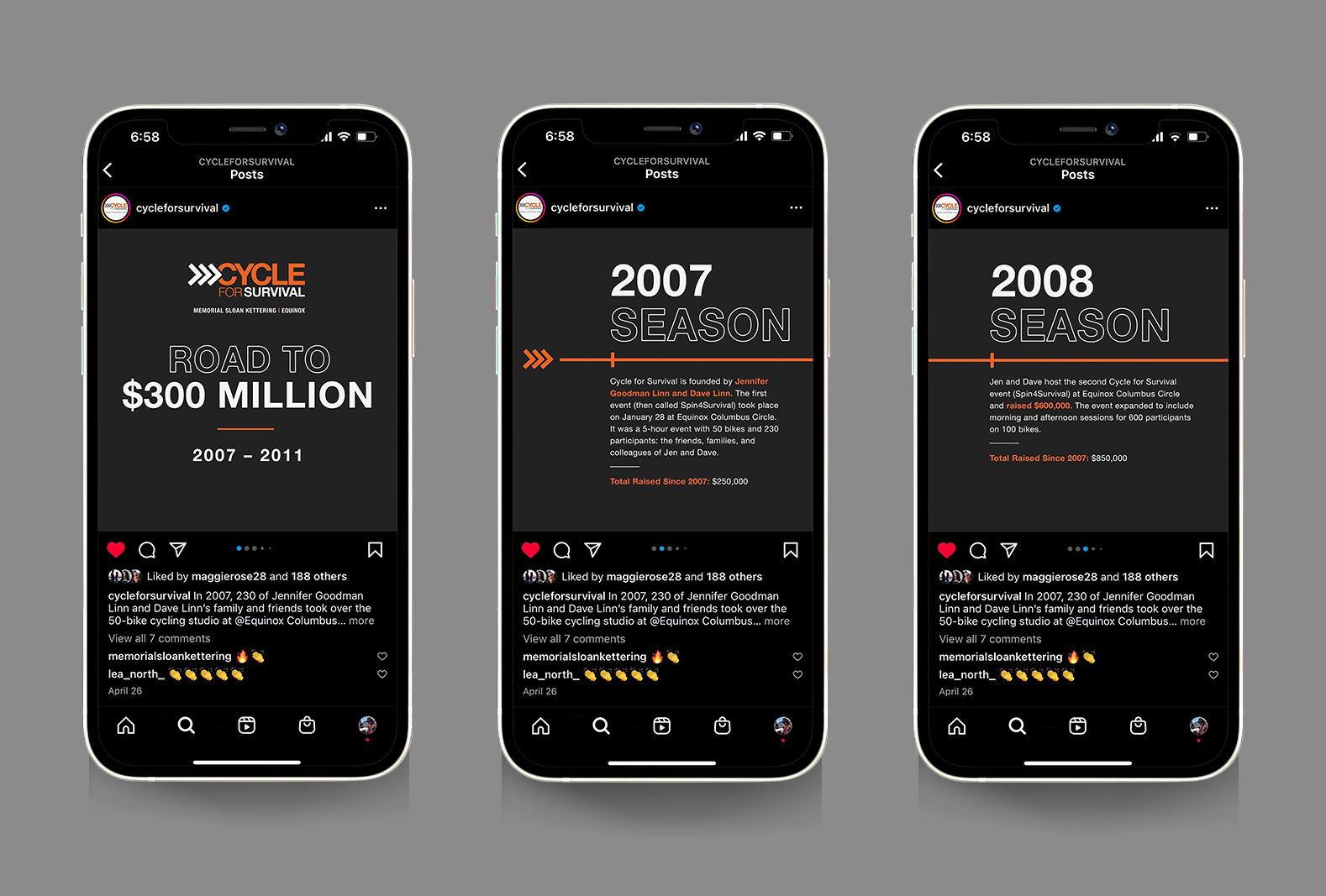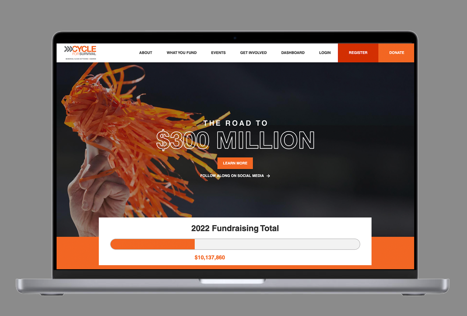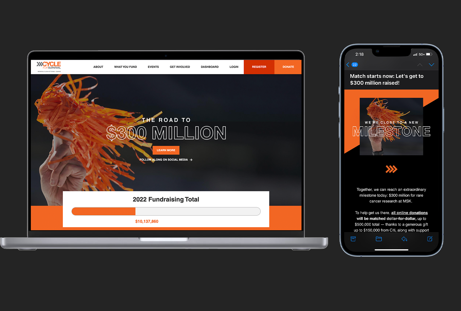Cycle for Survival hit $300 Million in total fundraising since inception 15 years ago. This campaign was launched as a fundraising match and involved multiple deliverables, such as a web page, many emails, and multiple social media posts.